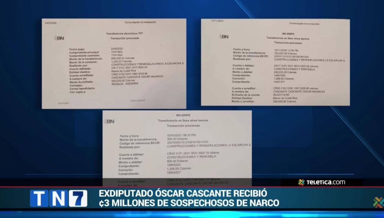 Transferencias bancarias reveladas por Telenoticias muestran que el exdiputado del periodo anterior, Óscar Cascante, del Partido Unidad Social Cristiana (PUSC), habría recibido más de ¢4 millones por parte de sospechosos de narcotráfico y lavado de dinero del caso “Turesky”.
