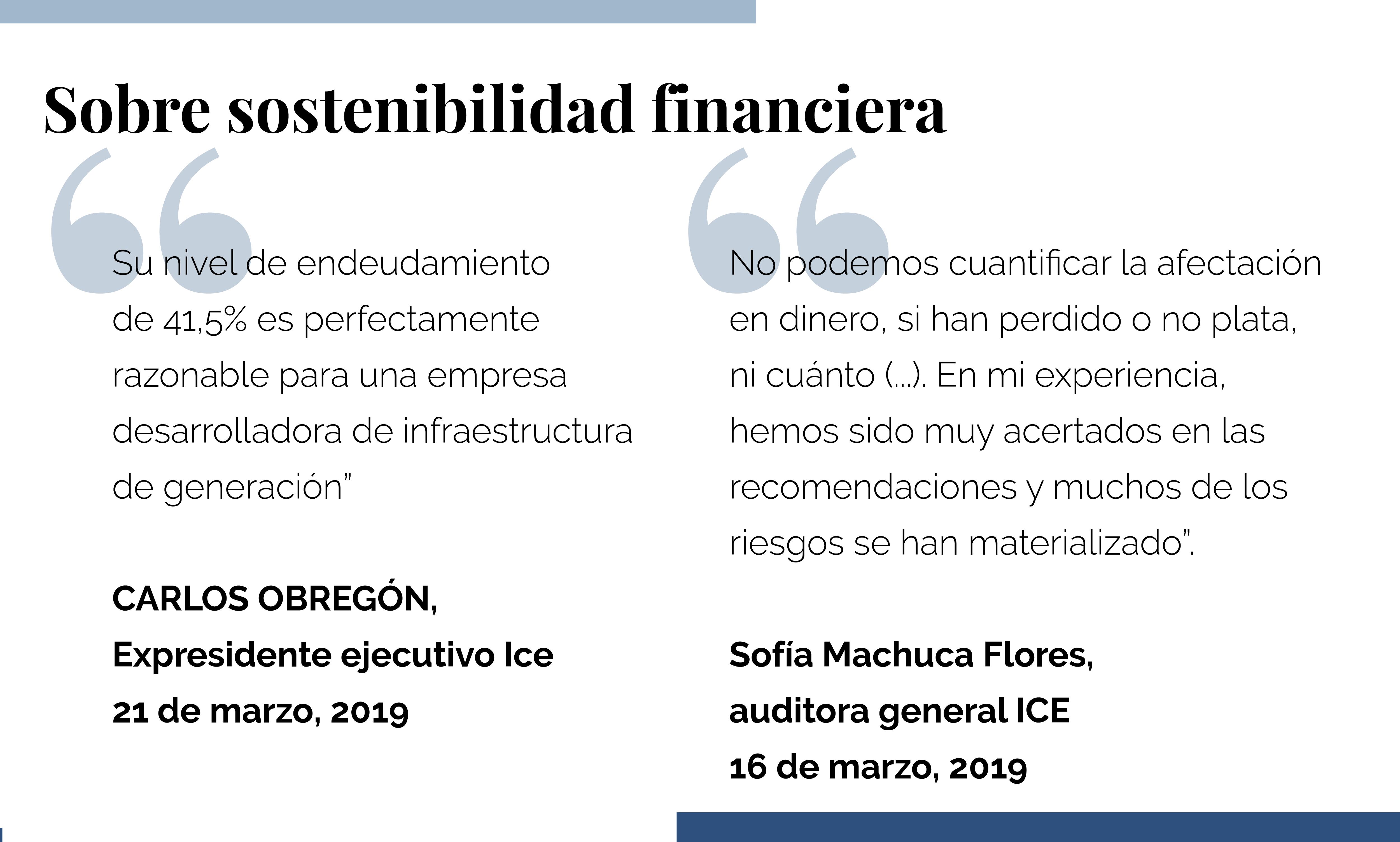 Sus declaraciones causaron revuelo entre los diputados de la Comisión de Control de Ingreso y Gasto Público quienes, apenas una semana antes, escucharon a la auditora general del Instituto Costarricense de Electricidad (ICE), Sofía Machuca Flores, asegurarles que los errores financieros del ICE “son constantes y que existe riesgo de sostenibilidad”.