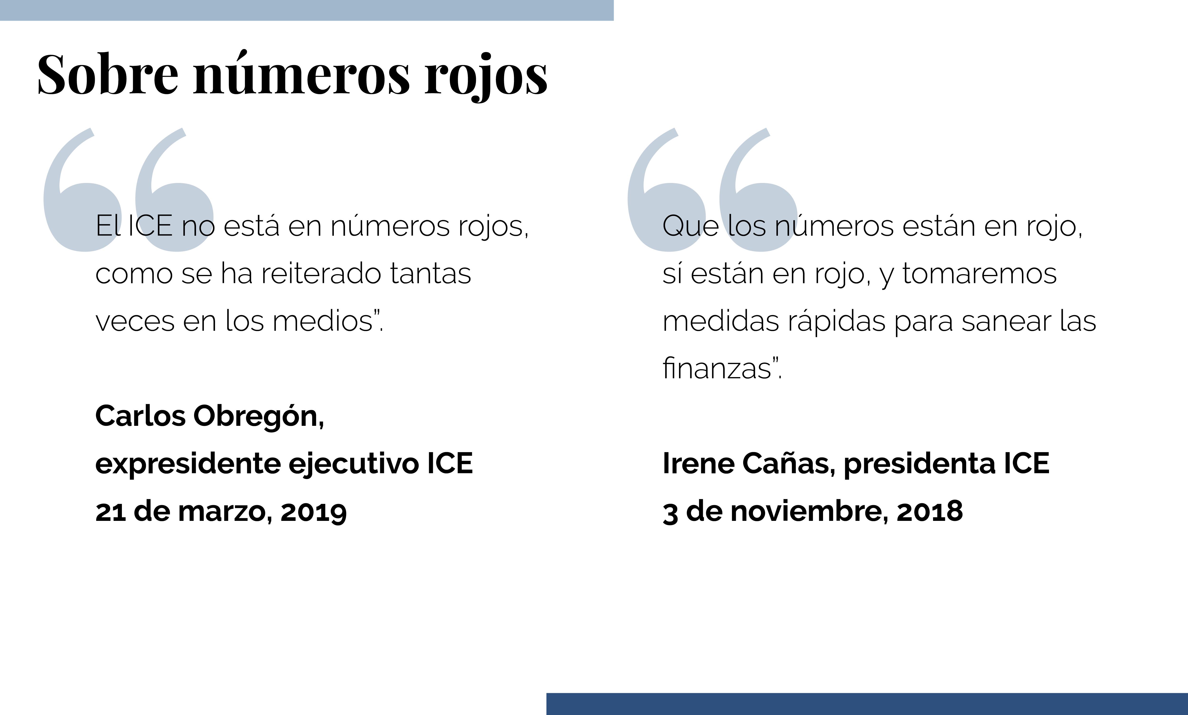Luego de asegurar antes los diputados que el ICE “no está en números rojos", el propio exjerarca les confirmó a los diputados que al cierre del 2017 (cuando aún él estaba en el cargo), el Instituto reportó un déficit neto de ¢51.706 millones.