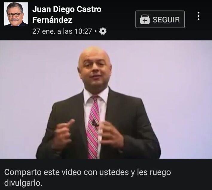 A las 10:27 a. m. del mismo día, Juan Diego Castro compartió el video en Facebook y escribió: “Comparto este video con ustedes y les ruego divulgarlo”.