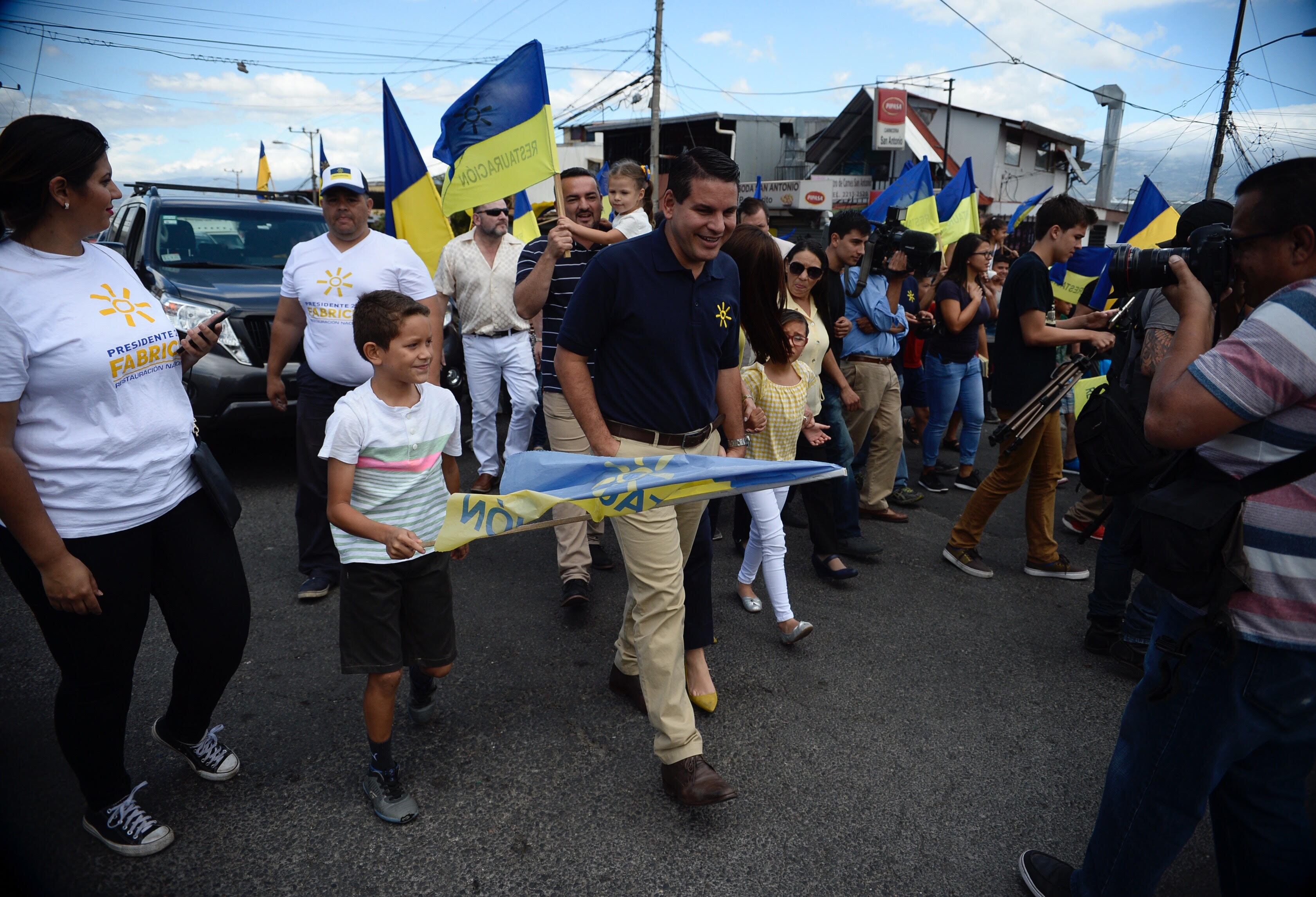 Fotos, banderas y globos repartió el candidato del Partido de Restauración Nacional, Fabricio Alvarado, en un recorrido que empezó este sábado desde Lomas del Río, en Pavas, hasta Desamparados.