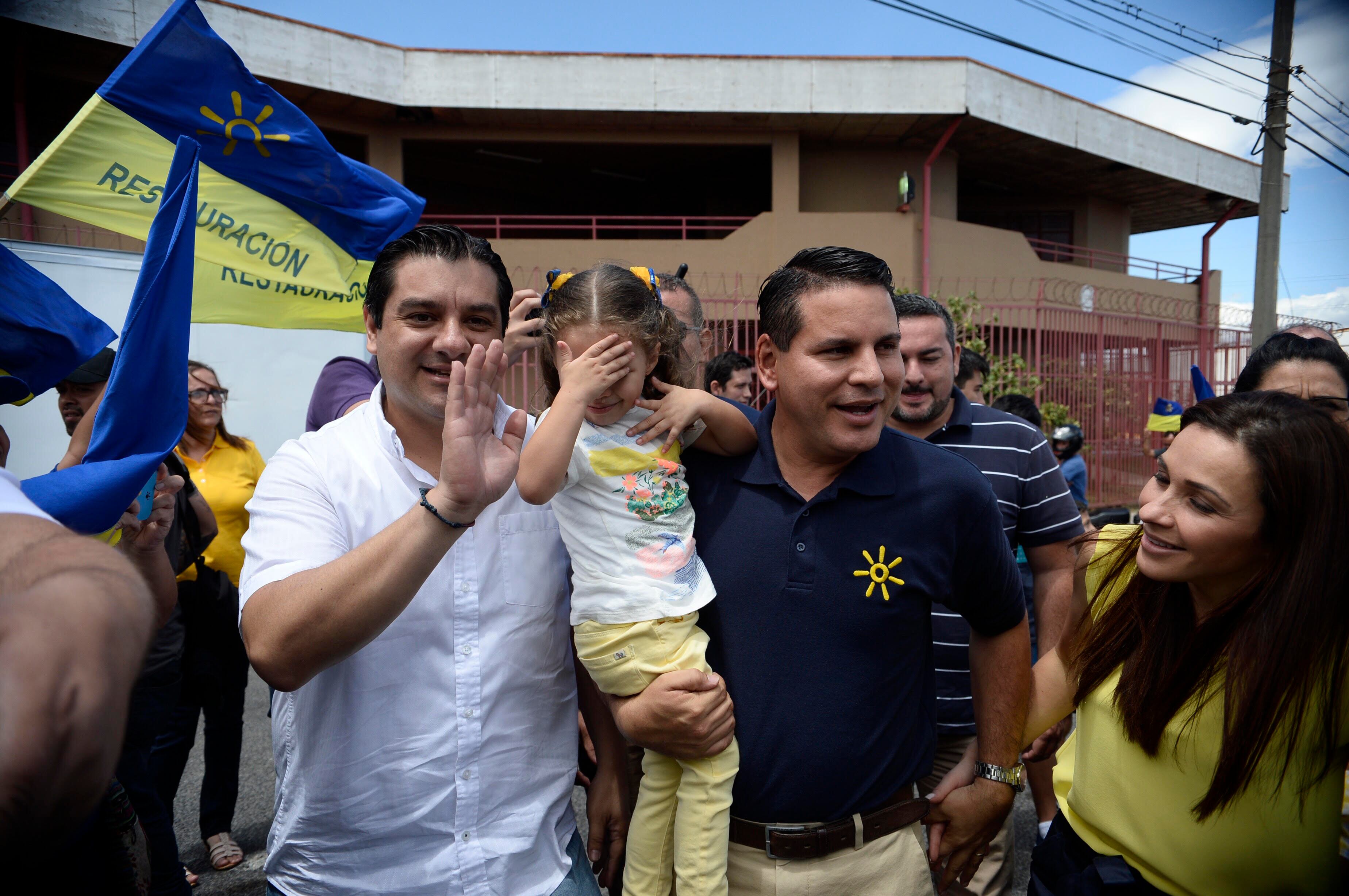 Alvarado hizo el recorrido acompañado de su esposa, Laura Moscoa, y de una hija. Además, lo acompañaron sus candidatos a vicepresidente, Francisco Prendas e Ivonne Acuña, y el presentador de televisión René Barboza.