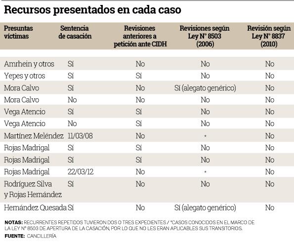 Dichos recursos están contenidos en la ley 8.503 del 2006, que crea la apertura de la Casación Penal, y la 8.837 del 2010, la cual creó los tribunales de apelación.