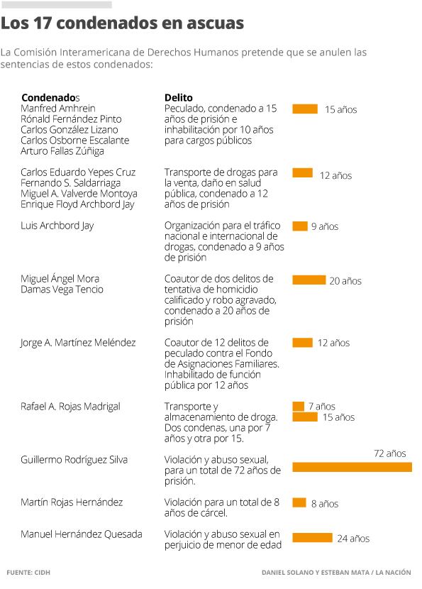 Con esa advertencia, Doris Arias, presidenta de la Sala III, instó a la la Corte Interamericana de Derechos Humanos (Corte IDH) a declarar sin lugar el reclamo de 17 condenados penales por delitos sexuales, de peculado, narcotráfico y tentativa de homicidio; quienes exigen que se anulen sus sentencias con el alegato de que el Estado violentó su derecho a una revisión integral de la sentencia que los envió a prisión.