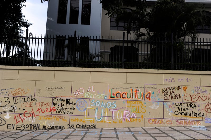 Ayer, al frente del Congreso, varios miembros de grupos culturales protestaron y pintaron las paredes legislativas con grafitis porque reclaman la reducción de los fondos para el Ministerio de Cultura. Ese presupuesto para el 2015, debe aprobarse antes del 30 de noviembre.