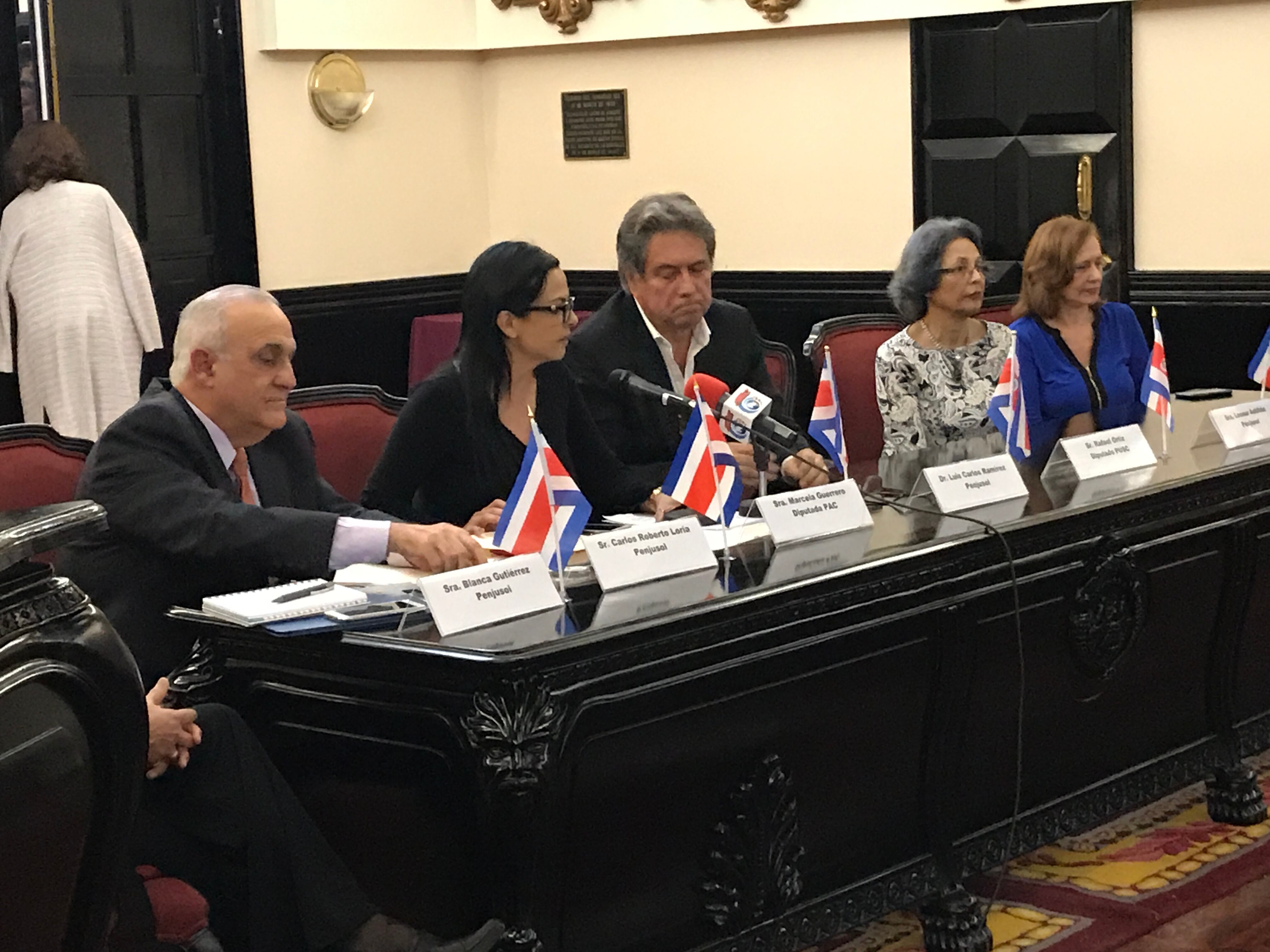 La Asociación Pro Pensiones Justas y Solidarias acudió este lunes al Congreso donde presentaron un proyecto de ley para derogar tres regímenes de pensiones con cargo al presupuesto que reparten pensiones de lujo. En la presentación los acompañó la diputada Marcela Guerrero, del PAC (der.). (Gerardo Ruiz )