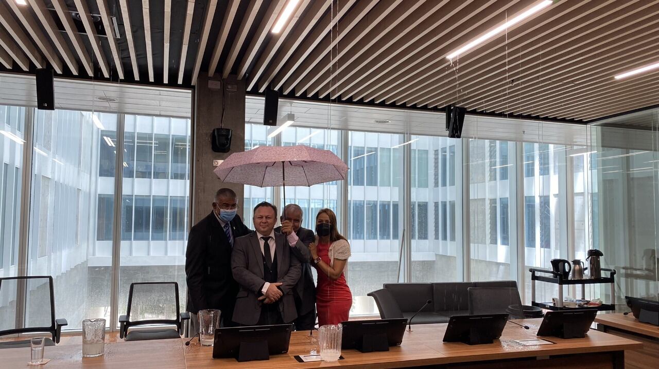 Varios despachos del edificio de la Asamblea Legislativa se inundaron este jueves, como ocurrió en la oficina de la diputada Catalina Montero, del PAC, en el quinto piso. También resultó inundada la oficina del oficialista Mario Castillo. Decenas de goteras se abrieron en pasillos y recintos como las comisiones del piso 4.