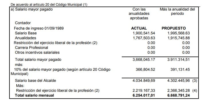 Sin embargo, eso no quiere decir que el alcalde recibe solo un 10% más del mejor salario, sino que es mucho más, como ocurre con el alcalde de Talamanca.
