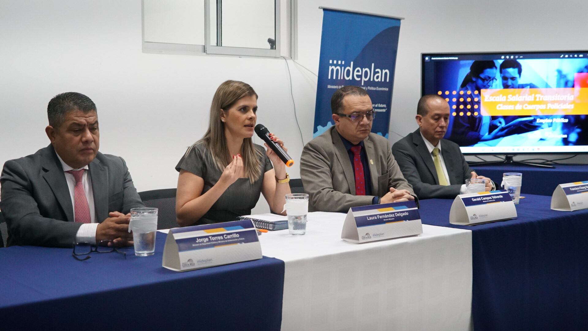 El Ministerio de Planificación (Mideplán) subió este lunes el salario global transitorio que se pagará a los nuevos policías, mientras se define el sueldo definitivo según los parámetros definidos por la Ley de Empleo Público.