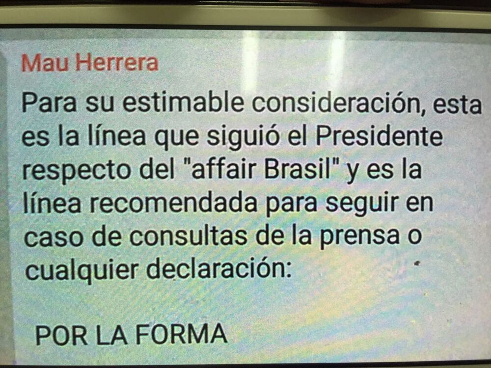 Tras filtrarse el contenido de ese chat, Mauricio Herrera envió ayer otro mensaje en el que mencionó el artículo 196 del Código Penal, donde se fijan las sanciones de cárcel, por la violación de las comunicaciones.