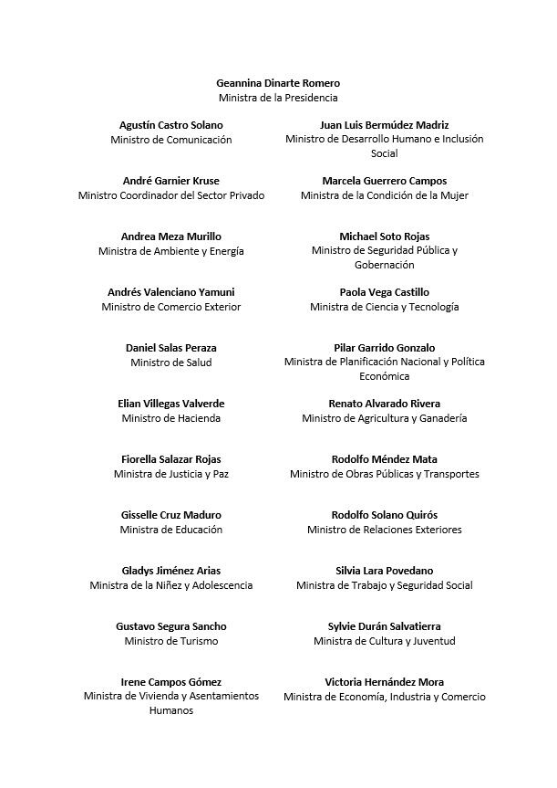 Los ministros y ministras del gabinete le enviaron una carta de apoyo al presidente de la República, Carlos Alvarado, horas antes de que el mandatario comparezca frente a la comisión investigadora de la UPAD, en el salón del plenario de la Asamblea Legislativa.