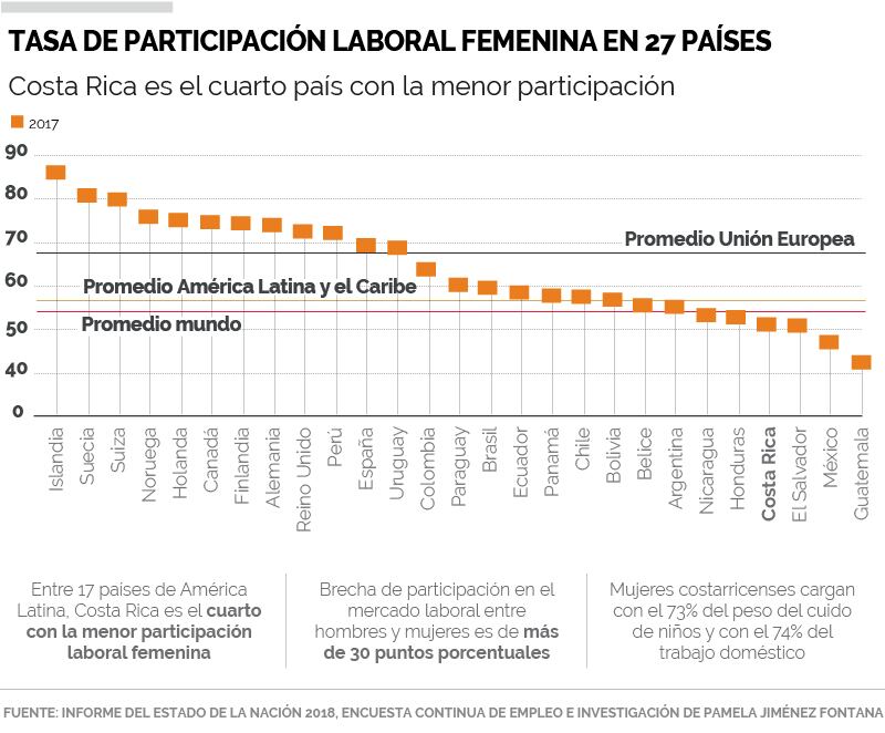 Una comparación entre 17 países latinoamericanos realizada por el Estado de la Nación determinó que Costa Rica es el cuarto país con la menor participación laboral femenina.