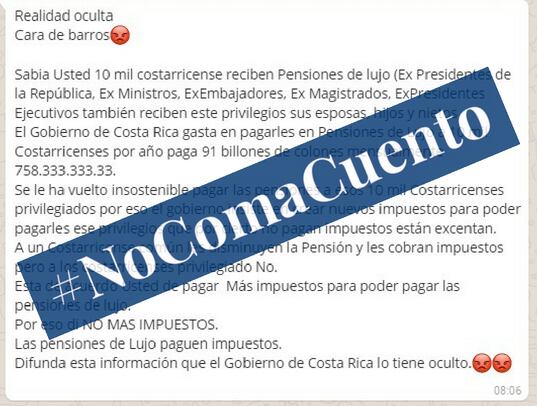Esta información forma parte del proyecto #NoComaCuento, una iniciativa de La Nación que busca analizar la veracidad de la información que está circulando en redes sociales. Usted puede formar parte de este proyecto enviándonos información que le parezca falsa o poco confiable al WhatsApp 6420-7160 o al correo nocomacuento@nacion.com.