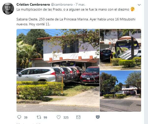 La aclaración se da luego de que el periodista Cristian Cambronero publicara en Twitter que los carros, de marca Mitsubishi, se encuentran en una de "las casas de campaña de Restauración Nacional.