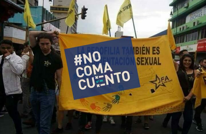 En la imagen se ve una leyenda que dice "La pedofilia también es una orientación sexual”, cuando el texto original de la manta era "¿Por qué tanto odio? Sólo hablamos de amor".