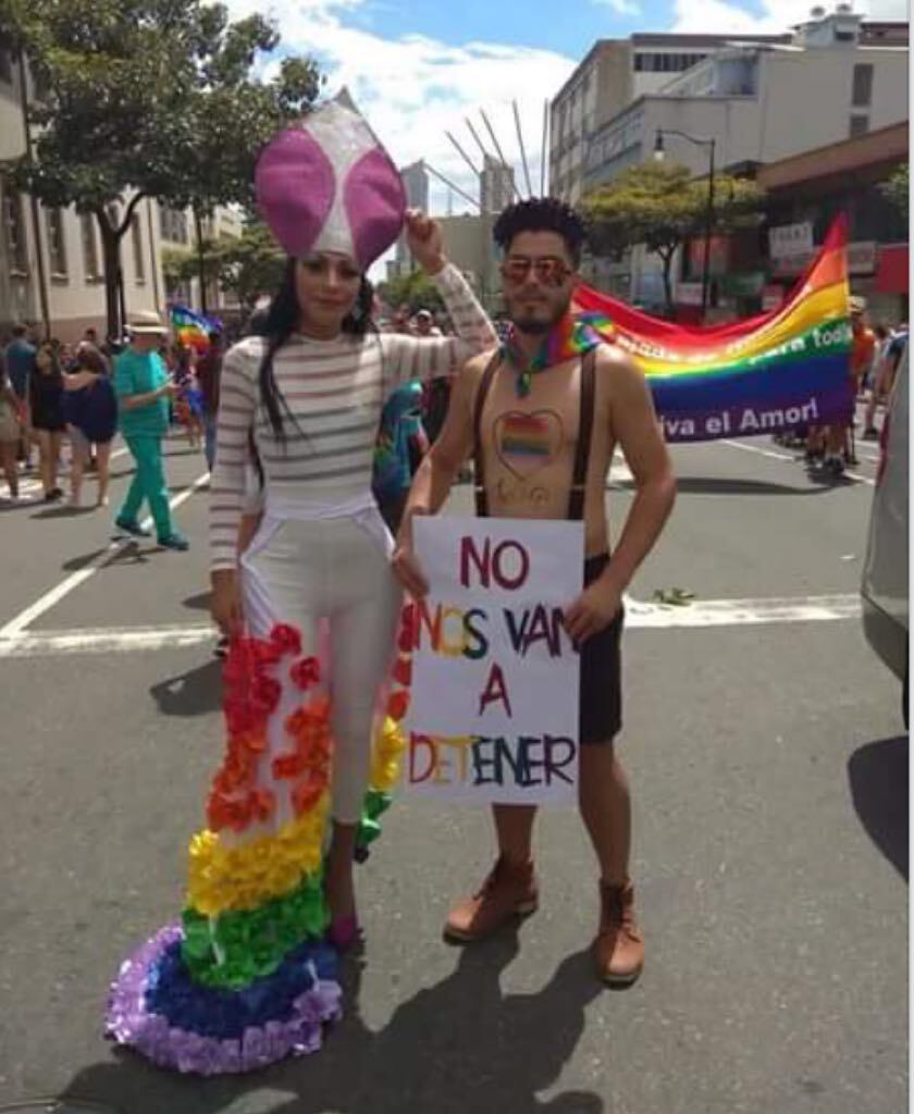 Una fotografía alterada de una manta utilizada, el pasado domingo, por el Frente Amplio en la Marcha de la Diversidad se está compartiendo en redes sociales como si fuera real.
