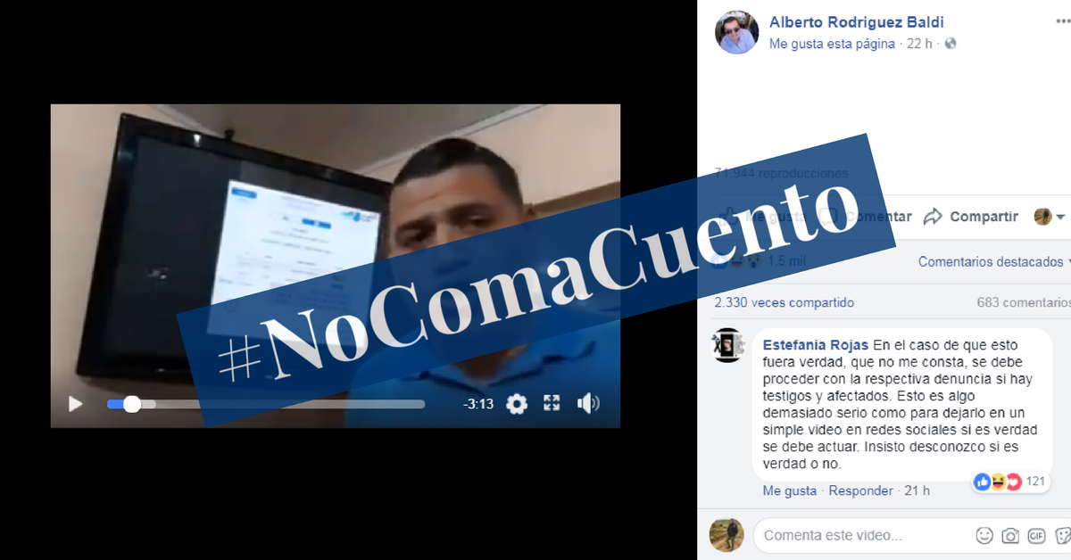 El empresario Alberto Rodríguez Baldí está compartiendo un video con información falsa, en su cuenta de Facebook, que muestran cifras manipuladas para hacer creer que se presentaron anomalías en el conteo de votos de la elección del pasado 1 de abril.