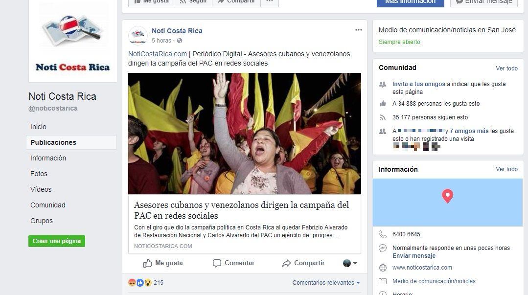 La nota se publicó la mañana de este domingo en el sitio web Noti Costa Rica, y a las 9.20 a. m. se compartió en una página de Facebook con el mismo nombre.