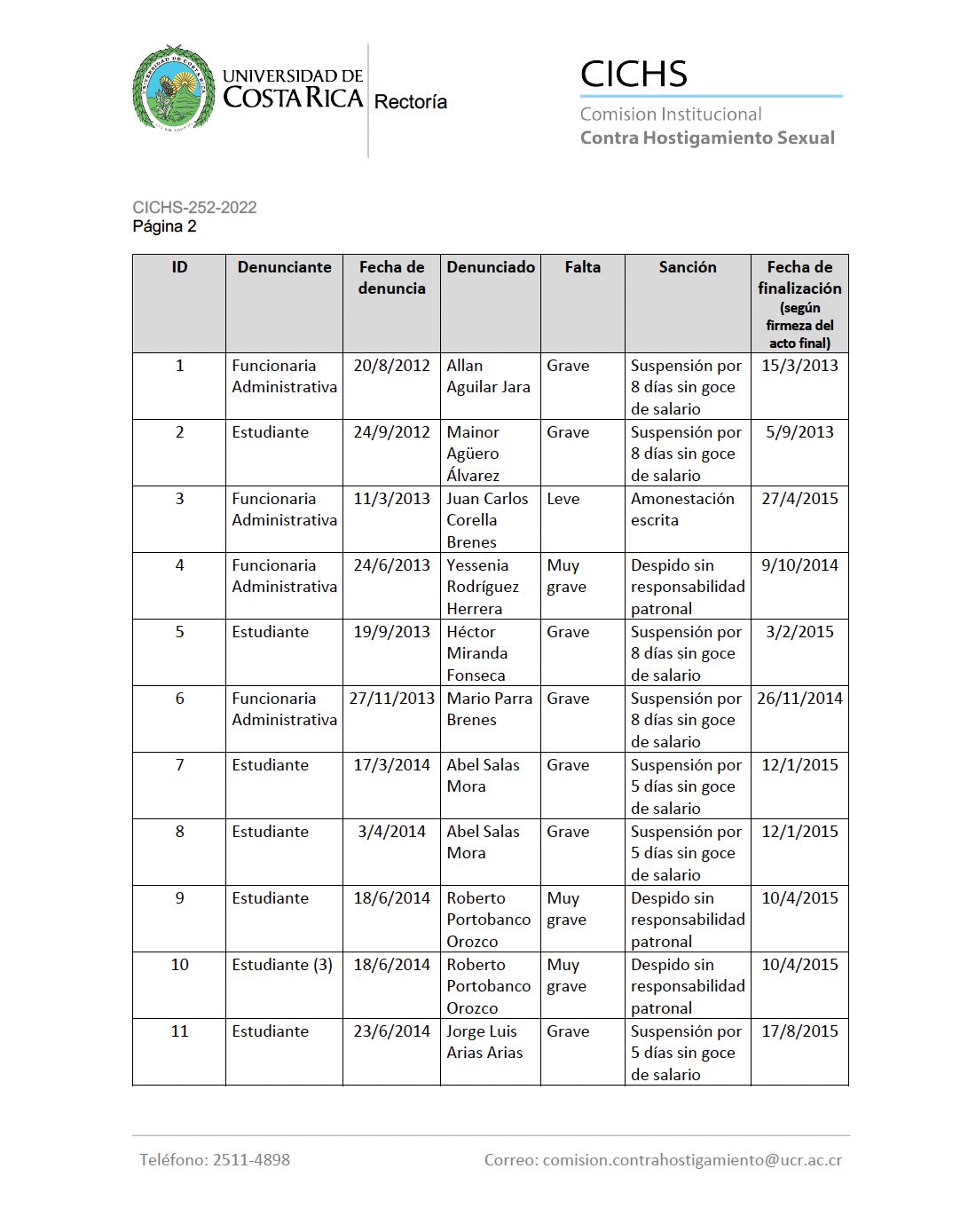 La UCR recibió dos denuncias de estudiantes en su contra, una en marzo y otra en abril del 2014. Luego de investigar lo sucedido, la universidad lo encontró responsable de haber cometido una falta grave y le impuso una suspensión de cinco días sin goce de salario en enero del 2015.