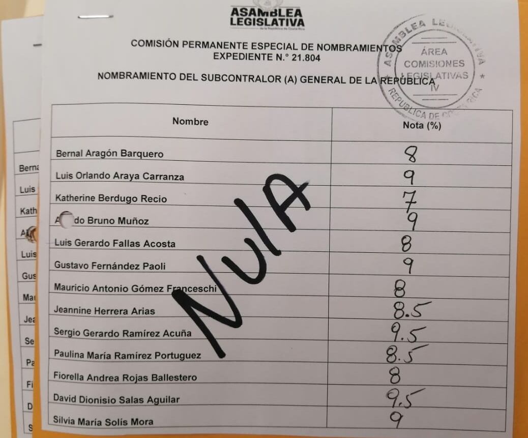 La metodología aprobada por Nombramientos para el proceso de selección del subcontralor o subcontralora establece que los diputados debían entregar sus calificaciones sobre las entrevistas de los aspirantes el miércoles 30 de setiembre, a más tardar “al mediodía”.