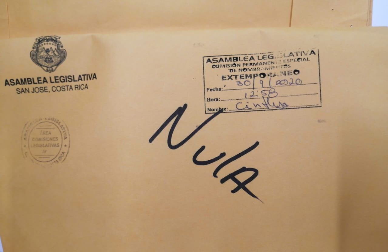 Los miembros de ese foro parlamentario avalaron, de forma unánime, hacerle ese “quiebre” al socialcristiano, pese a que había entregado su boleta con las calificaciones de las entrevistas de los aspirantes de forma extemporánea, tal como consta en el sello plasmado en el sobre con la información.