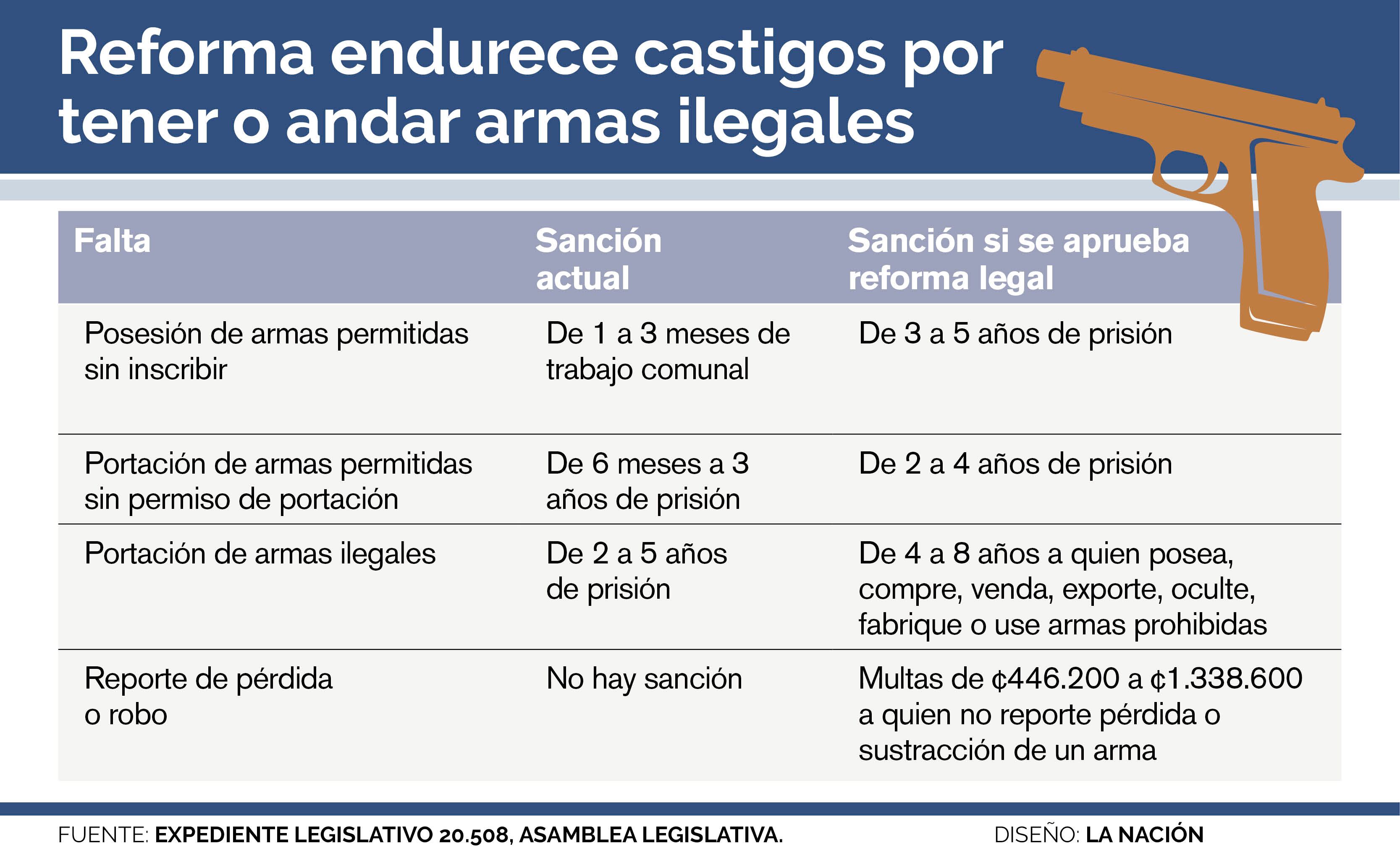 Se trata del texto tramitado bajo el expediente legislativo 20.508 o reforma parcial a la Ley de Armas y Explosivos. Ahora, solo resta la publicación en el diario Oficial La Gaceta para que entre en vigor.