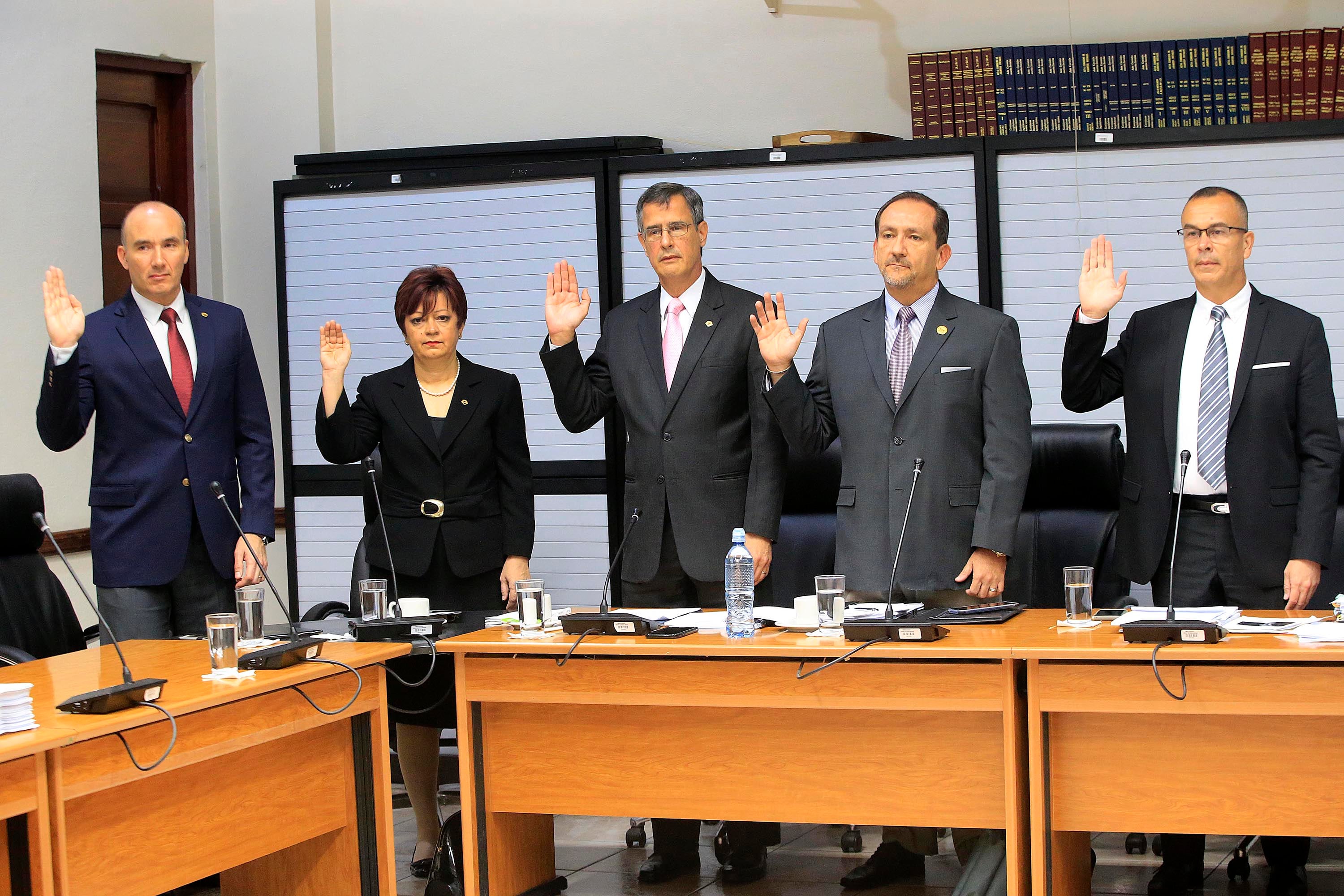 En la audiencia de este miércoles, a Sobrado lo acompañaron los magistrados Eugenia María Zamora y Max Esquivel, así como Héctor Fernández, director del Registro Electoral, y Rónald Chacón, jefe del departamento de Financiamiento de Partidos Políticos.