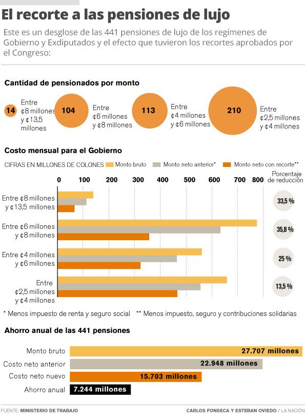 Sin embargo, con los recortes aprobados, ahora el Estado debe desembolsar ¢15.700 millones, lo que genera un ahorro de casi ¢7.250 millones por año. Así se desprende de información suministrada por el Ministerio de Trabajo sobre la reforma en que se aplicaron las leyes.