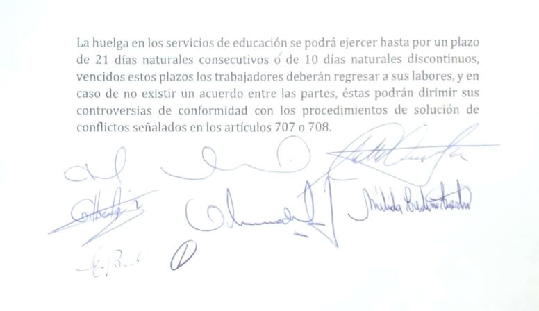 El acuerdo consistió en dar la educación la categoría de servicio estratégico, en el que se permitirán huelgas de hasta 21 días naturales consecutivos o 10 días naturales discontinuos.