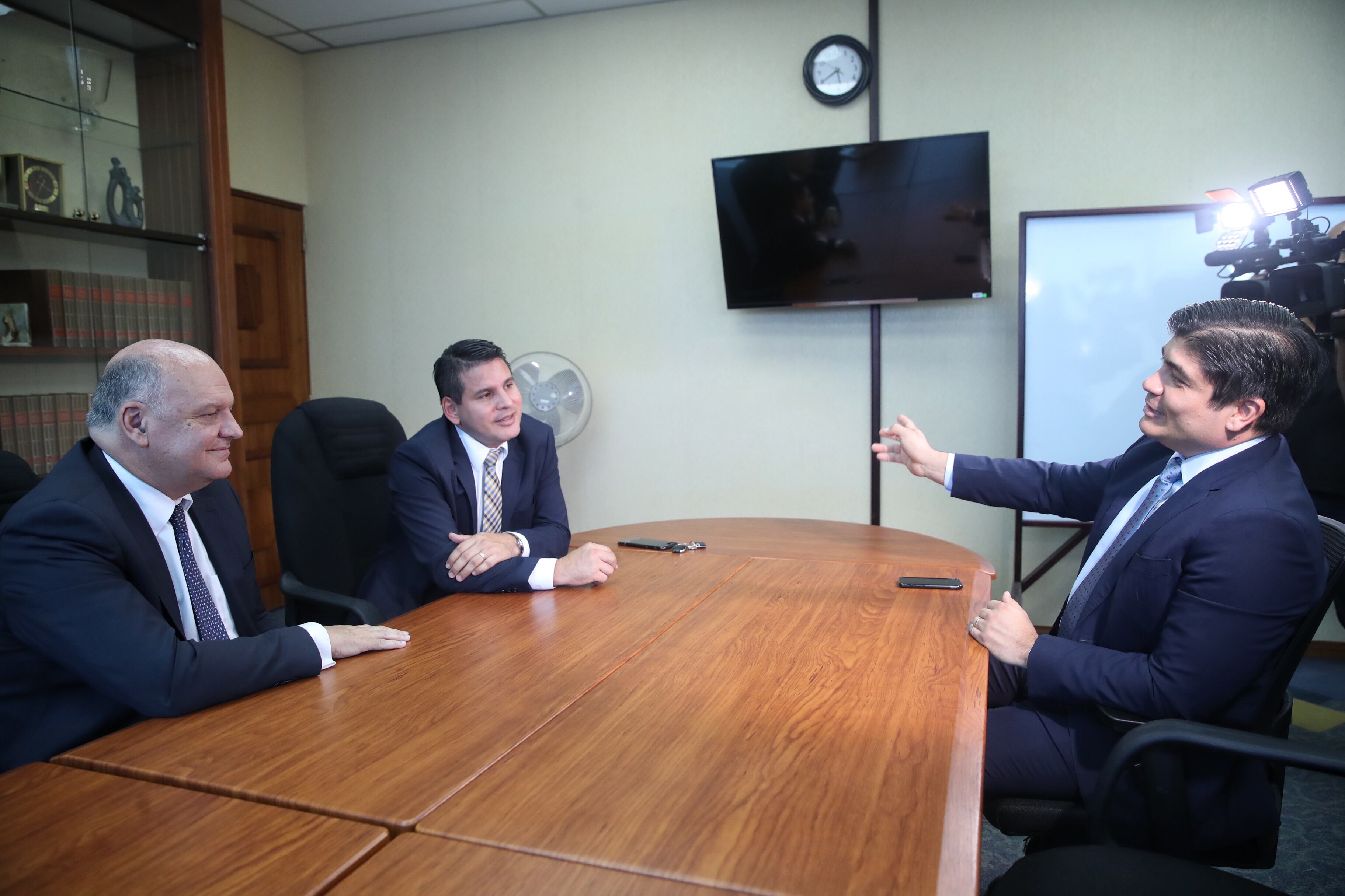 Tras la cita, el excandidato de Restauración dijo que llegó al piso 13 del Instituto Nacional de Seguros (INS), donde Alvarado instaló su campamento tras ganar la segunda ronda, a felicitarlo por su próxima toma de posesión del poder, este 8 de mayo, y a adelantar temas legislativos en los que a su partido, representado por 14 diputados, le interesa contar con el respaldo del Poder Ejecutivo.