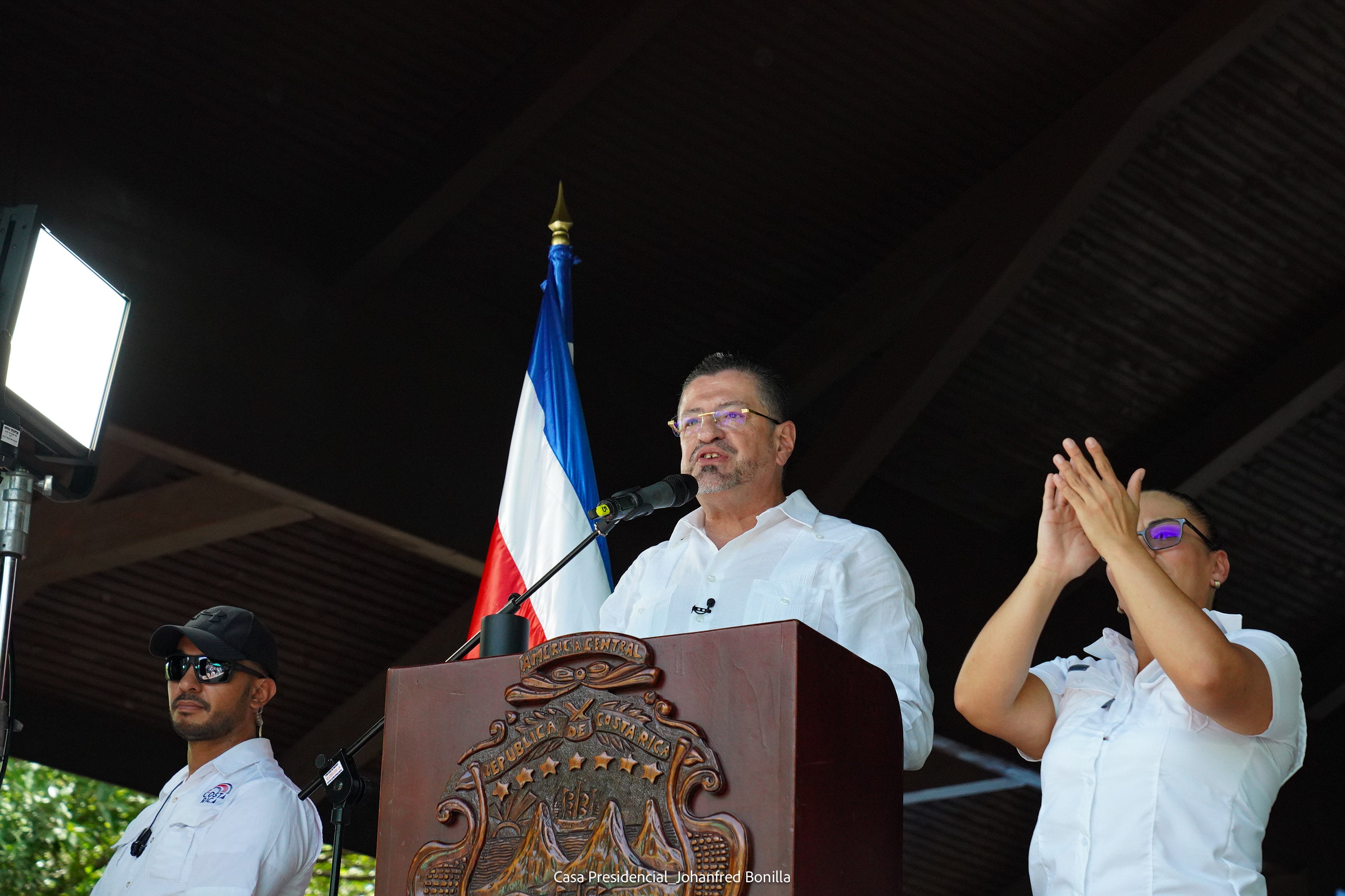 El presidente de la República, Rodrigo Chaves, llamó esbirros a estudiantes universitarios que efectuaron una manifestación durante el acto de conmemoración de la anexión del Partido de Nicoya, este 25 de julio, en Nicoya.