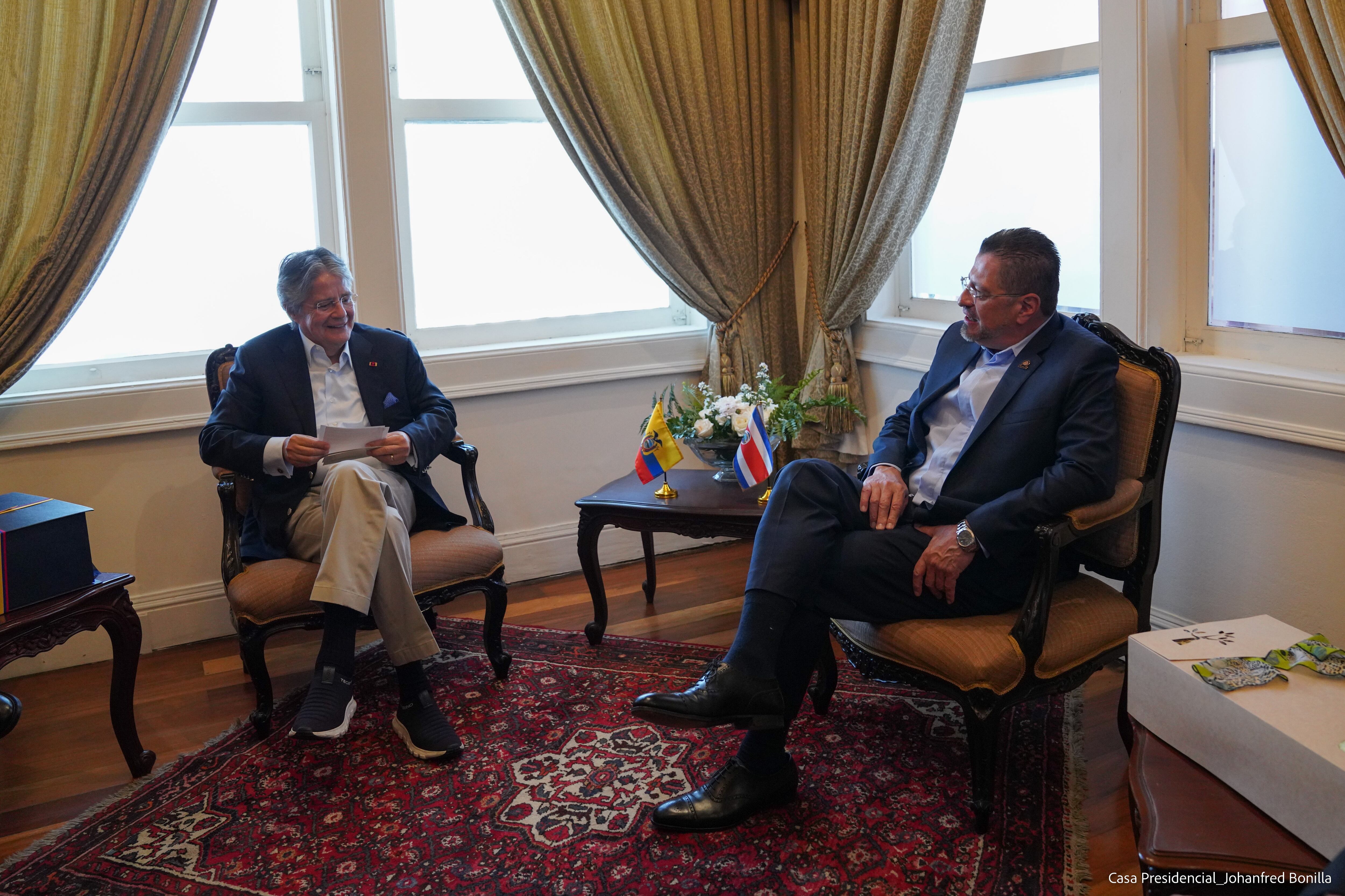 Durante una reunión, Chaves y Lasso hablaron acerca de la relación política, comercial y temas de común interés, tanto bilaterales como multilaterales, según informó Casa Presidencial.