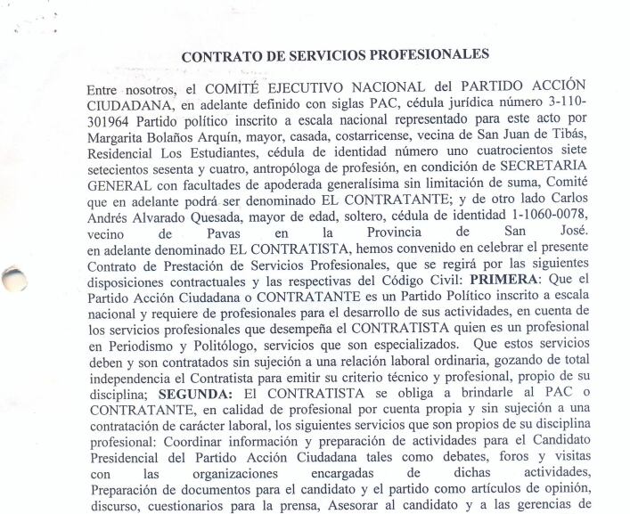 Con base en 11 documentos, el Tribunal Supremo de Elecciones (TSE) validó el contrato que el actual presidente de la República, Carlos Alvarado, firmó con el PAC para las elecciones del 2010.