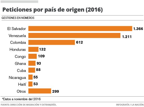 El 64% las tramitaron nacionales de El Salvador (34%) y Venezuela (30%), mientras que el resto respondió principalmente a migrantes de Colombia, Honduras y Ghana, según Migración.