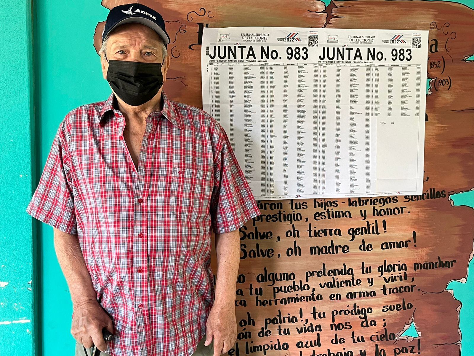 Rafael Pedro de Jesús Mora Díaz, un josefino de 88 años radicado en Ciudad Colón, asistió a votar este domingo en la escuela El Rodeo, con lo cual acumula 17 participaciones en comicios nacionales. A las 10:32 a. m., marcó las dos papeletas junto a su nieto Daniel Barboza, quien le ayudó a emitir el sufragio y luego votó también.