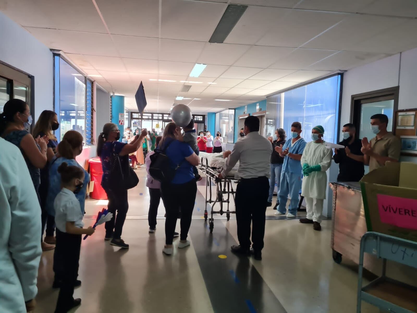 En medio de aplausos, risas, música, oraciones y hasta el llanto de sus familiares, Richard abandonó el Hospital el 5 de abril. Mientras descendía los tres pisos y se dirigía al lugar donde lo esperaba el personal de transporte, fue acompañado por muestras de apoyo y cariño.