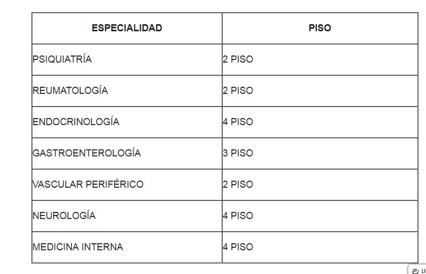 Una semana después, el 9 de abril, se habilitarán los consultorios de especialidades para Gastroenterología, Neurología, Medicina Interna y Vascular Periférico.
