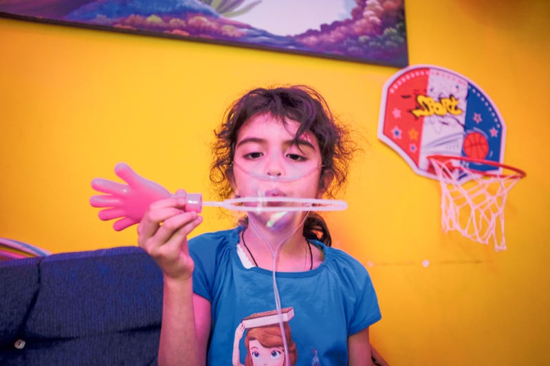 Siguiente paso. En la estrecha casa sin cielo raso donde vive Naydelin y su familia, la Unidad de Cuidado Paliativo montó un pequeño hospital con equipo de oxígeno y medicinas por si la pequeña sufre alguna crisis de dolor.