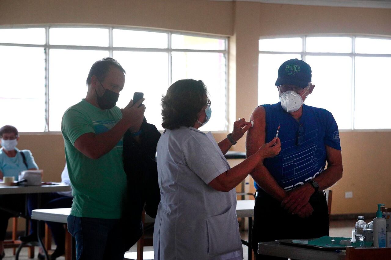 El adulto mayor acudió al salón parroquial de esa comunidad, que funciona como vacunatorio, a las 11 a. m. de este viernes, en compañía de su hijo Jorge. Fue él quien, como en la primera ocasión, captó el video al momento de la aplicación del fármaco.