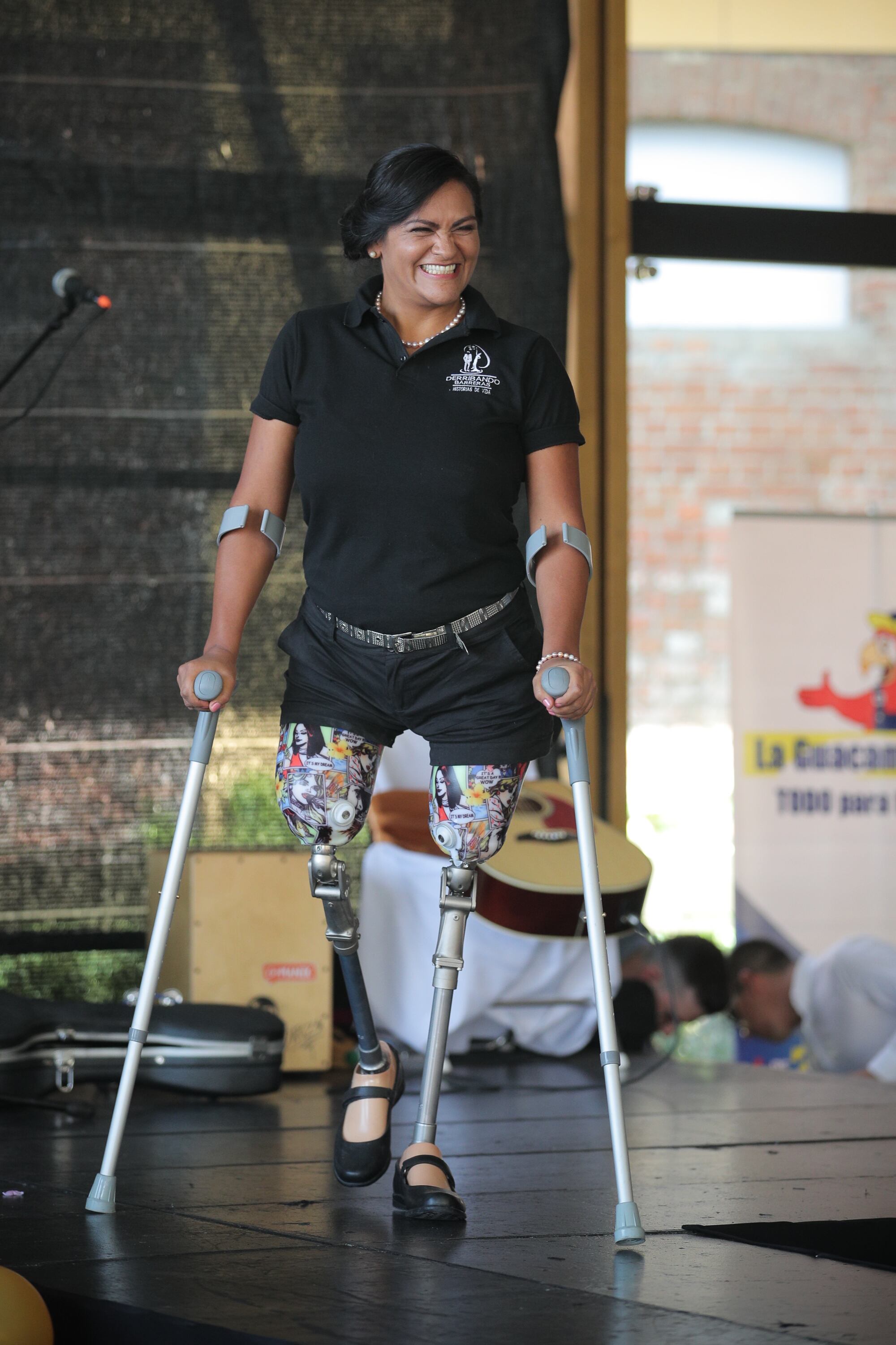 Con ropa casual, María Pilar Riveros Ledezma se adueñó de la pasarela. Es sobreviviente de un accidente de tránsito en el que perdió sus dos piernas.