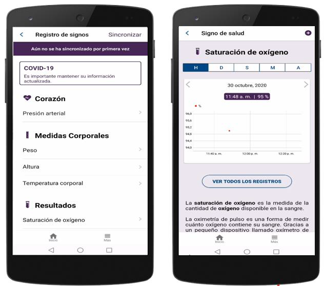 Además, en su más reciente actualización incluyó la posibilidad de registrar la saturación de oxígeno. Se trata del control de los niveles de oxígeno en la sangre. Lo normal es que estos niveles estén entre 90 y 100. Si están por debajo de este nivel la persona entra en un estado llamado hipoxia, en donde podría experimentar dificultades respiratorias que desemboquen en una neumonía.