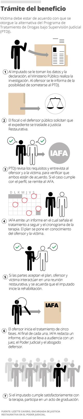 “La persona debe asistir a terapias de grupo, como alcohólicos o narcóticos anónimos. También puede que deba ir al tratamiento del IAFA. Como requisito, debe mantenerse activa laboralmente o académicamente", indicó la funcionaria.