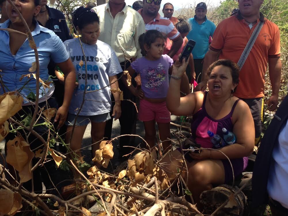 En el lugar hay hombres mujeres y niños que cerraron el paso vehicular con llantas, piedras, ramas y los mismos vecinos, algunos de los cuales están acostados en la vía.