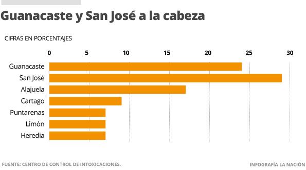 Le siguen las sustancias químicas usadas específicamente en labores de limpieza, con un 21% (720 casos). Estas son las historias más graves, como la del niño guanacasteco.