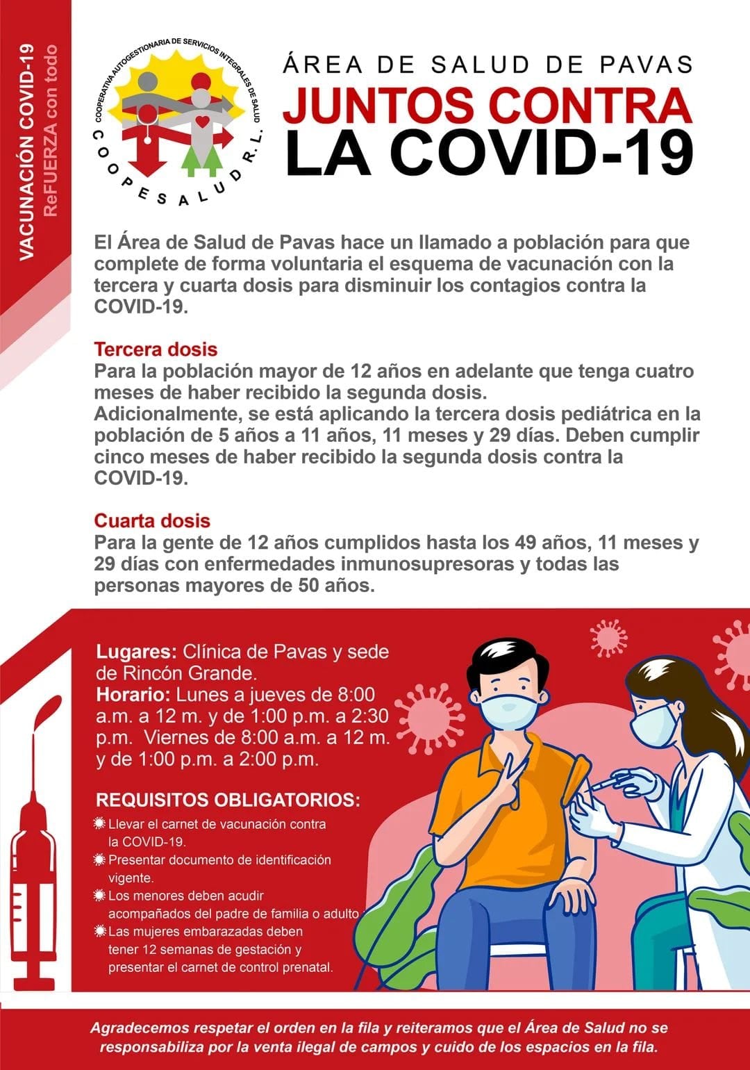 La caída de un 40% en la solicitud de vacuna anticovid, obligó a funcionarios del Área de Salud de Pavas a salir escuelas y empresas de la comunidad para continuar con la campaña contra la enfermedad, sobre todo porque la cobertura de terceras y cuartas dosis −los llamados refuerzos– es sumamente baja entre los vecinos de este distrito josefino.