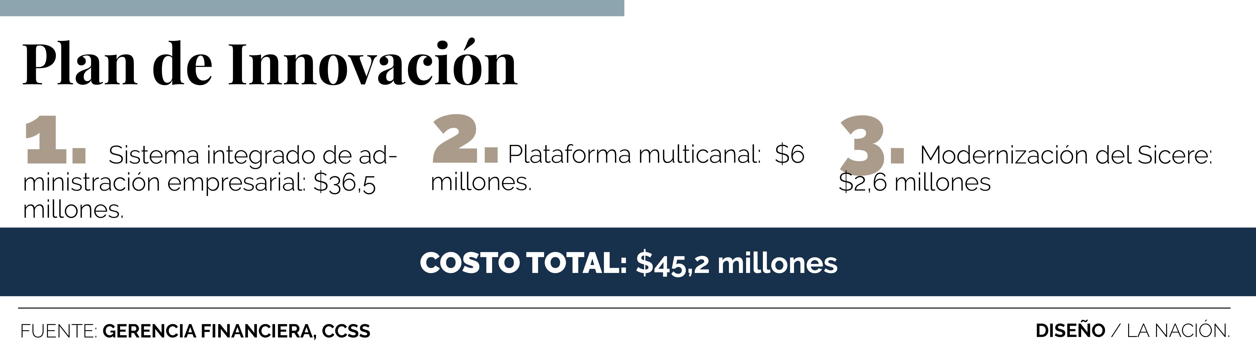 Según el informe conocido por la Junta Directiva de la CCSS, este plan, en su componente de ERP, enfrentará costos de inversión y de operación que, para sus primeros cuatro años, serán de $16 millones (primer año) hasta bajar paulatinamente a menos de $4 millones.