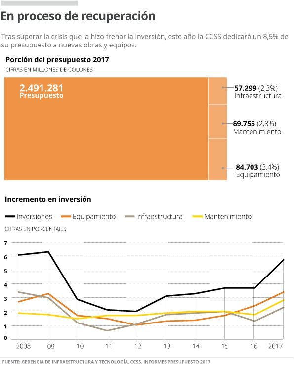No es sino hasta años recientes en que la Caja empezó a incrementar el porcentaje de su presupuesto dedicado a desarrollo de nueva infraestructura y compra de equipo.