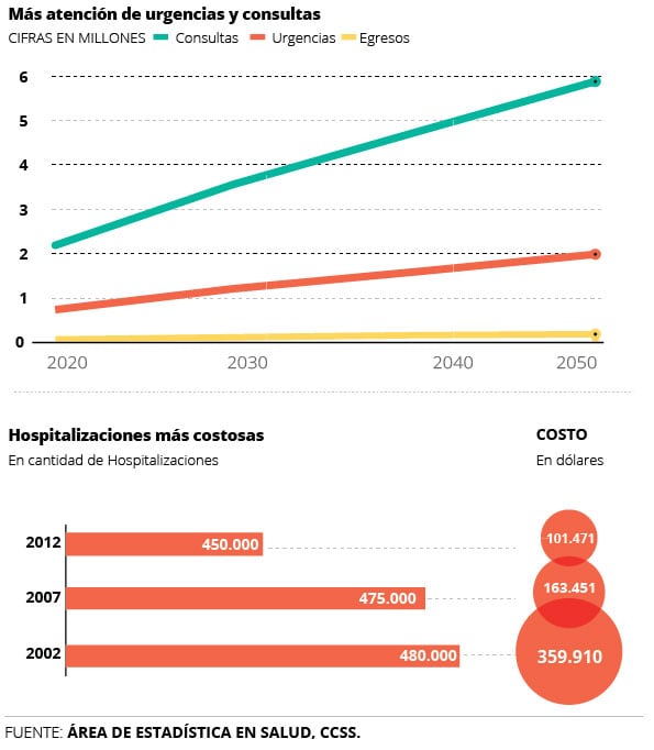 Este centro de salud, como los otros 28 hospitales de la Caja, se han visto presionados por el incremento del envejecimiento de la población nacional.