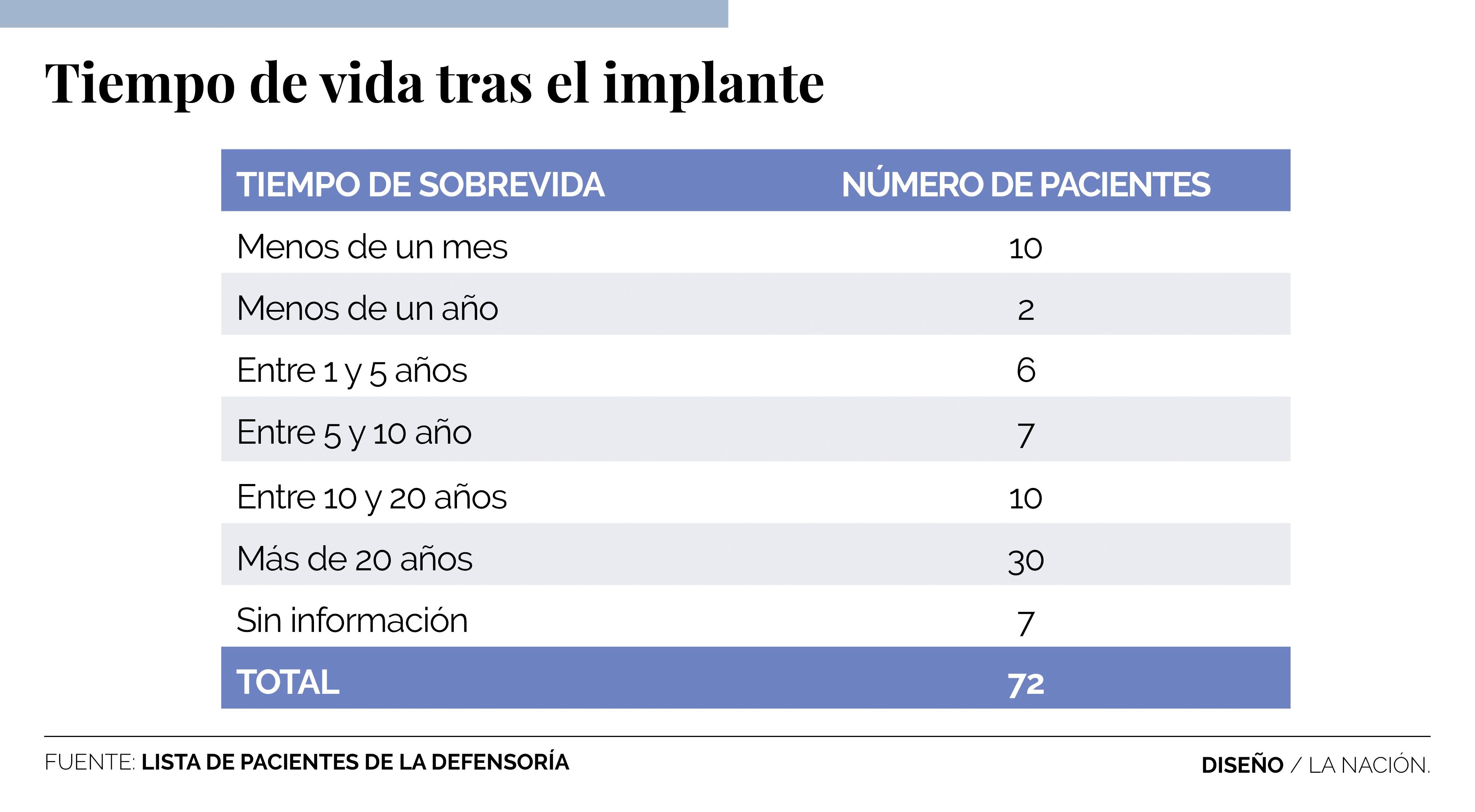 Sin embargo, según la lista de pacientes que tiene a Defensoría, al 13 de mayo de 1992, día de las declaraciones de Soto, se había implantado el dispositivo a los 72 pacientes y 25 ya habían fallecido.