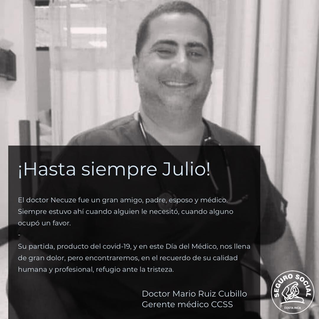 “Hasta siempre Julio”. Con esas palabras el doctor Mario Ruiz Cubillo, gerente médico de la CCSS, emitió una sentida despedida para anunciar la muerte de otro médico a causa de la covid-19.